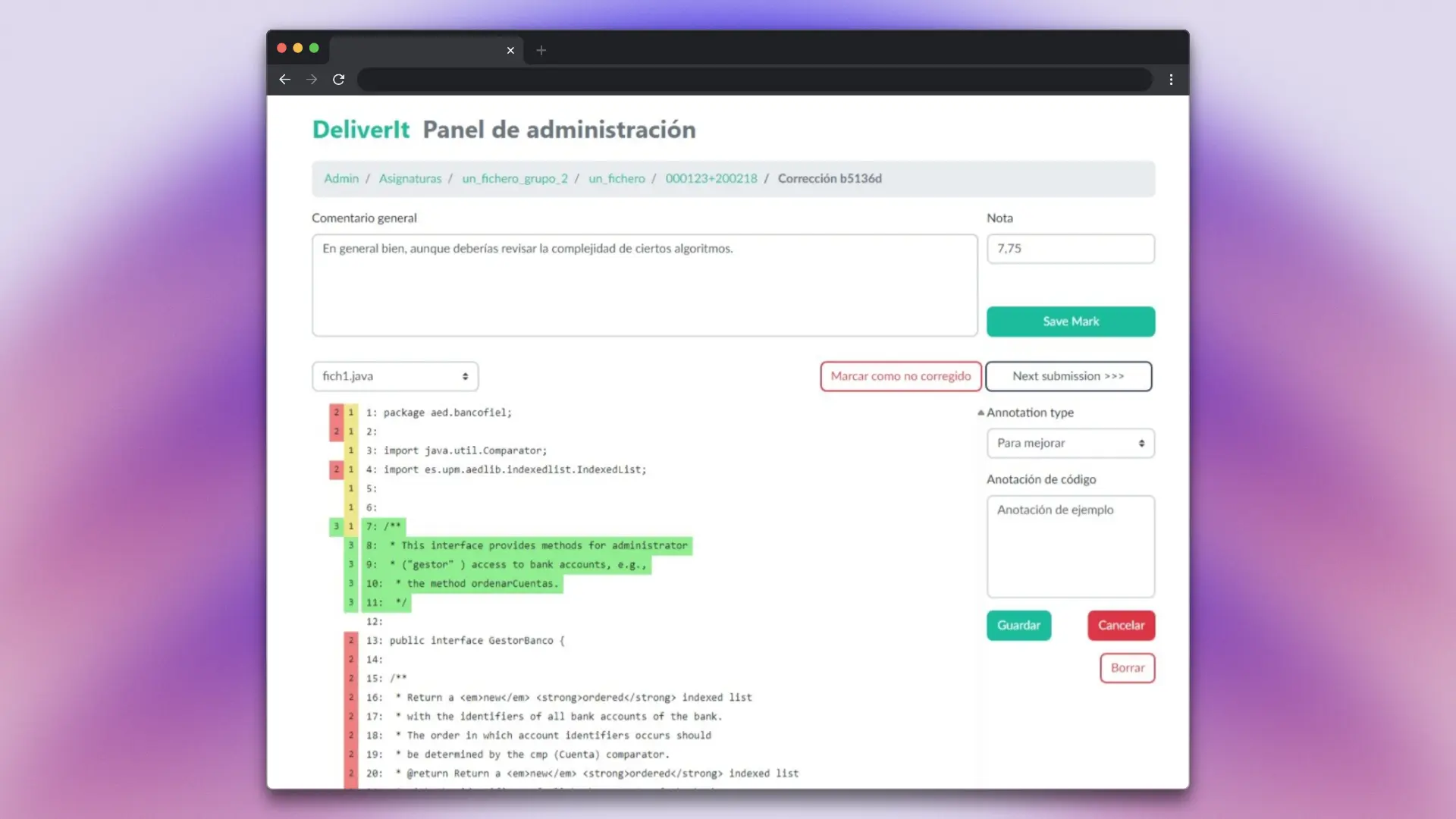 DeliverIt - Corrector manual de código